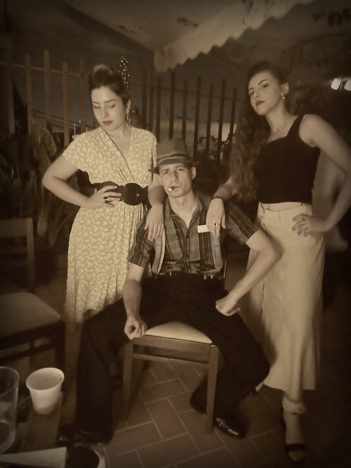 «Με συγχωρείτε!», ακούστηκε μια γυναικεία φωνή από την είσοδο. Οι άντρες γύρισαν το βλέμμα σε δύο κομψές δεσποινίδες που στέκονταν στην κορυφή της σκάλας και τους κοίταζαν. Η μια φορούσε ένα κίτρινο μακρύ φόρεμα με σχέδια λουλουδιών πάνω στο ύφασμα και η άλλη μια κίτρινη μακριά φούστα με μια μαύρη στενή μπλούζα από πάνω. Η περίτεχνη κόμμωση και των δύο δεν επηρεαζόταν καθόλου από τις βεντάλιες που ανέμιζαν στα χέρια τους.
