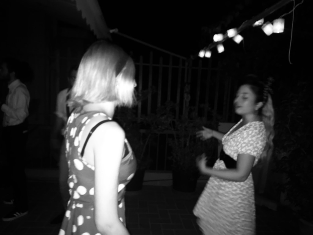 Η βεράντα τώρα είχε πάλι μετατραπεί σε σκηνή, σώματα έρχονταν και σώματα έφευγαν, χόρευαν κι έπιναν, πήγαιναν μέσα κι επέστρεφαν για να χορέψουν κι άλλο, ποδοβολητά στο πάτωμα και καπνός στον αέρα. Οι ομιλίες είχαν πλέον σχεδόν σταματήσει, όλοι είχαν μάθει για όλους και κανείς δεν ήθελε να μάθει κάτι παραπάνω εκείνο το βράδυ. Σε κάθε παύση της μουσικής το μόνο που ακουγόταν ήταν οι κομμένες ανάσες και τα γέλια, τα βήματα που οδηγούσαν σε ένα ακόμη ποτό, τα βήματα που οδηγούσαν σε μια μικρή ξεκούραση σε κάποια καρέκλα.